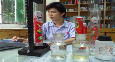 質(zhì)檢員正在用罐二重卷封投影儀檢測卷封質(zhì)量